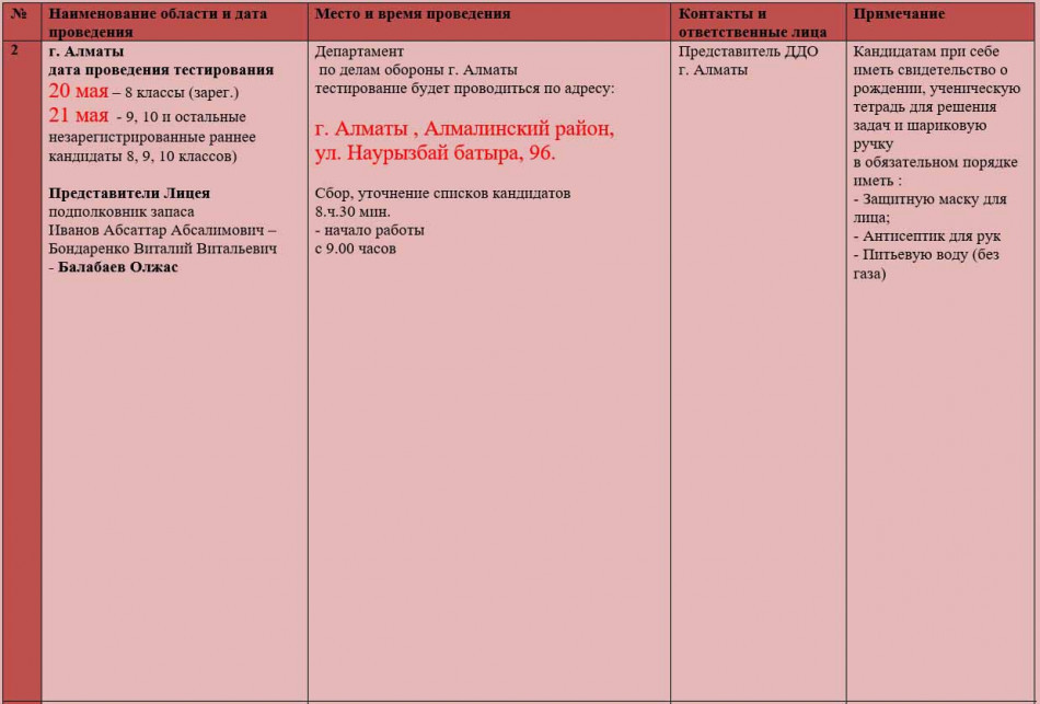 Перечень предметов для поступления в лицей